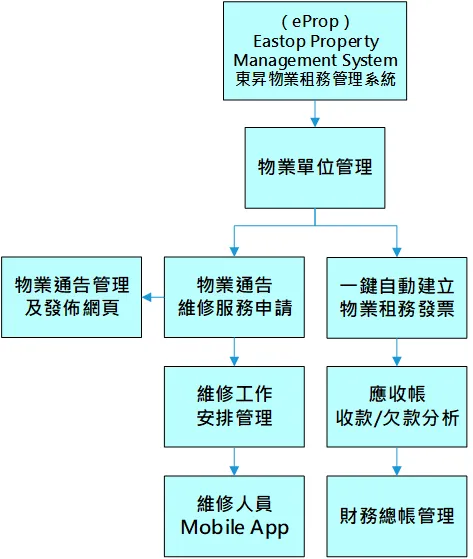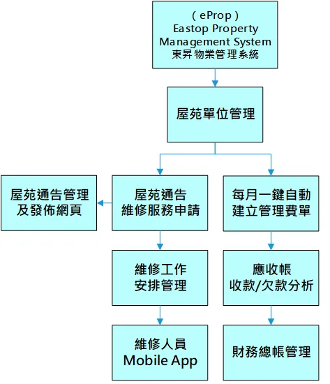 東昇物業管理系統是一套360度全方位的物業管理應用平台。從物業/租戶/業主資料管理,買賣/租賃合約管理,訂金管理,抄錶管理,應收帳也能直接反映到財務總帳上。再配合東昇Eastop精心設計的多公司/T-code功能,就能即時查詢各物業的所有相關資訊及應收帳和各物業獨立損益表,有助物業持有人能更有效掌握物業回報。