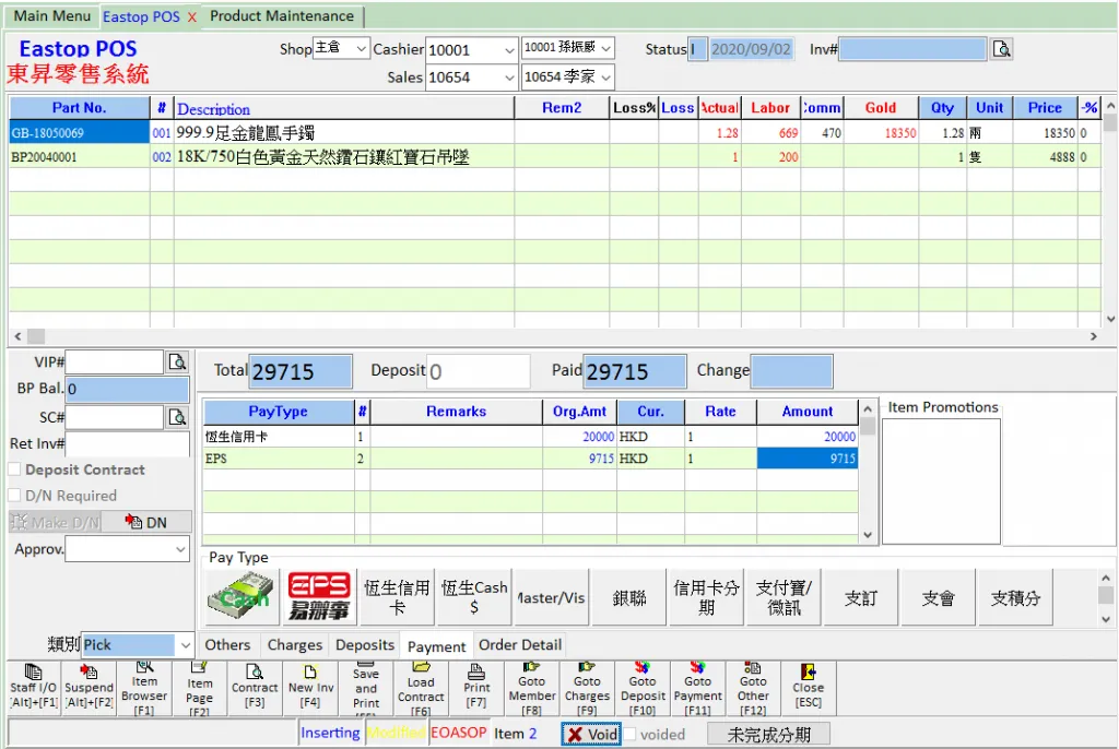 4.Operation Management: Support various jewelry business operation: manage / modify products’ particulars, purchase / repurchase gold or jewelry, batch update on gold price, sales / exchange / return products, jewelry consignment, Wong Tai Sin Saving Club, card printing and daily settlement etc.;