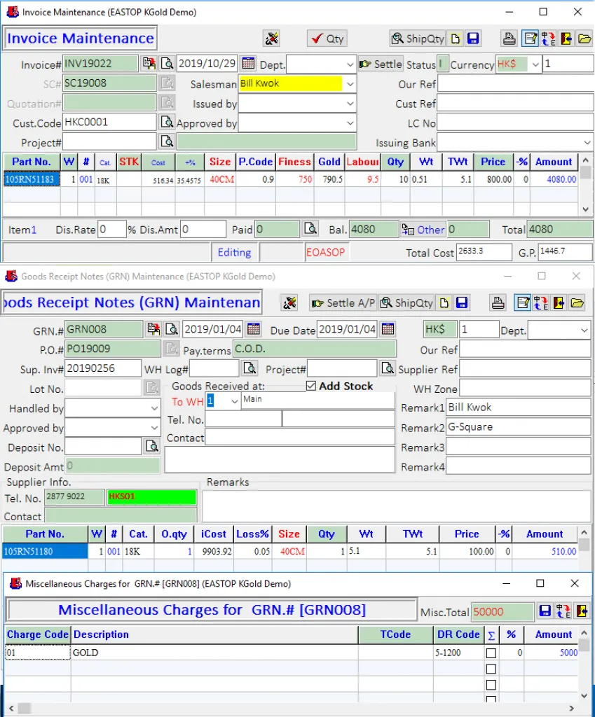 The purchase cost, selling price, inventory cost and inventory market value fluctuate daily with the gold price in K Gold business industry. Since the quantity and weight are both important to the inventory for each K-Gold product, an accurate and precise ERP system is crucial to effective K-Gold business management.