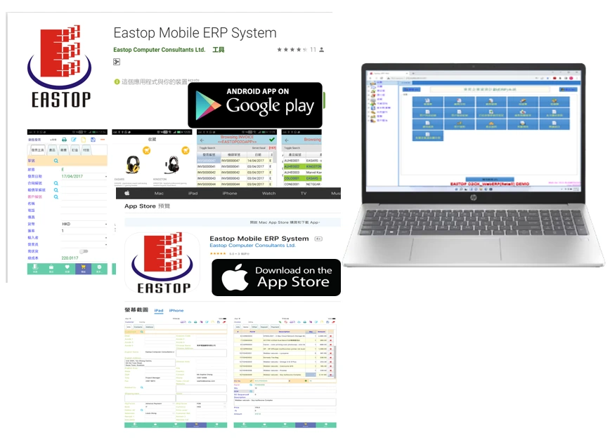 東昇全方位的方案除了進銷存系統,還包括連鎖零售POS系統,東昇倉庫管理系統(WMS System),東昇客戶關係管理系統(CRM System),東昇電子商貿系統(Eastop e-Commerce)及多種東昇流動應用系統(Eastop Mobile Apps)。眾系統共享數據庫,為客戶提供全方位的中央管理服務。