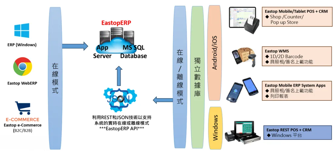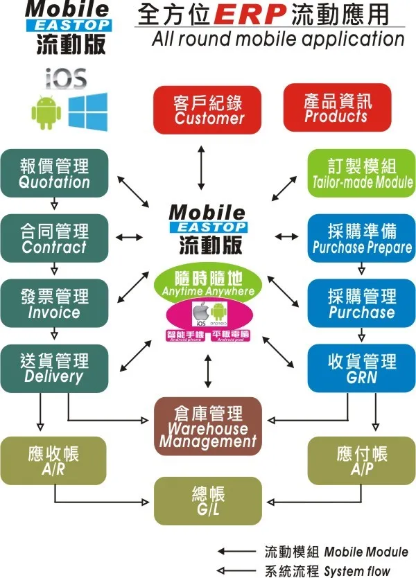 為了迎合手機ERP操作和市場趨勢,我們東昇ERP公司在2012年開始做一系列的研究,而且終於成功開發出一套手機ERP APP提供給有需要的客戶使用。它也是利用RESTful技術,配合JASON把ERP推向真正的現代Mobile ERP系統APP。