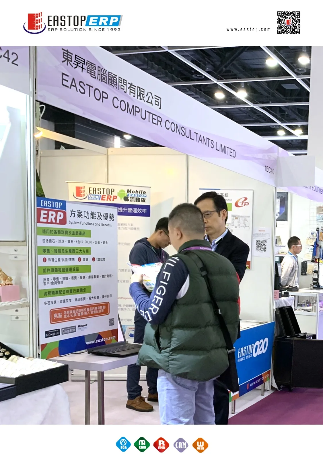 感谢客户支持「东升珠宝管理系统」 香港国际珠宝节已完满结束,感谢客户莅临支持!为期四天的展会中,最多客户查询的产品是「东升珠宝管理系统」。我们在这里简单总结系统的五大亮点: 1) 适用产品:钻石、珍珠、宝石、K金 (K-GOLD) 、足金、铂金; 2) 专用方案:珠宝生产/批发/零售、金铺及K金批发; 3) 组件涵盖:批发、零售、发镶、寄卖、采购、库存数量、会计财务、客户/会员管理; 4) 配合流程:多石采购、改镶改度、饰品寄卖、黄大仙会、牌仔列印; 5) 系统详细记录每件产品的库存数量、成本、石表、证书、购入及销售纪录等资料。如有任何查询,欢迎与我们联络!电话: (852) 2357 9088 电邮:info@eastop.com