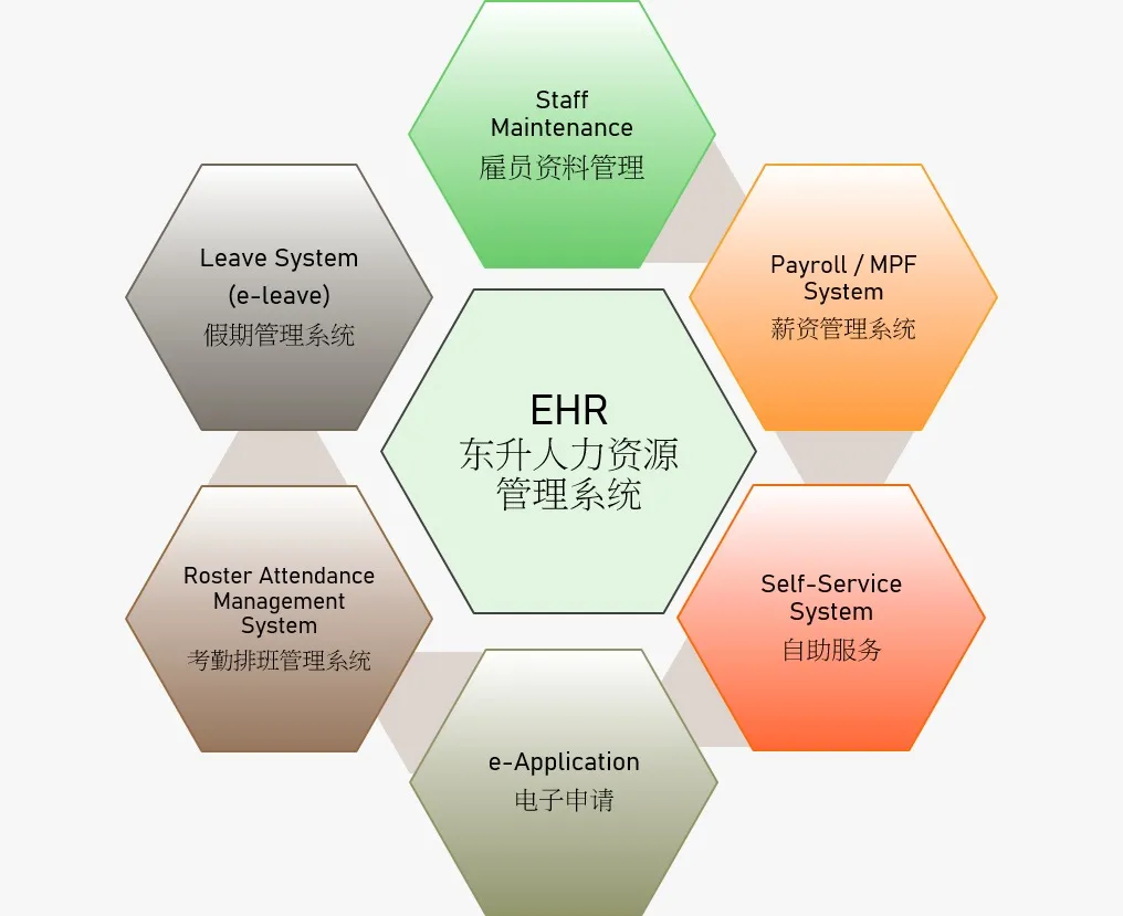 东升人力资源管理系统(EHR)可以实现集团化的统一管理,同时支援不同分支机构根据当地的法规及文化采用不同的人力资源、薪资、休假及考勤等政策体系。