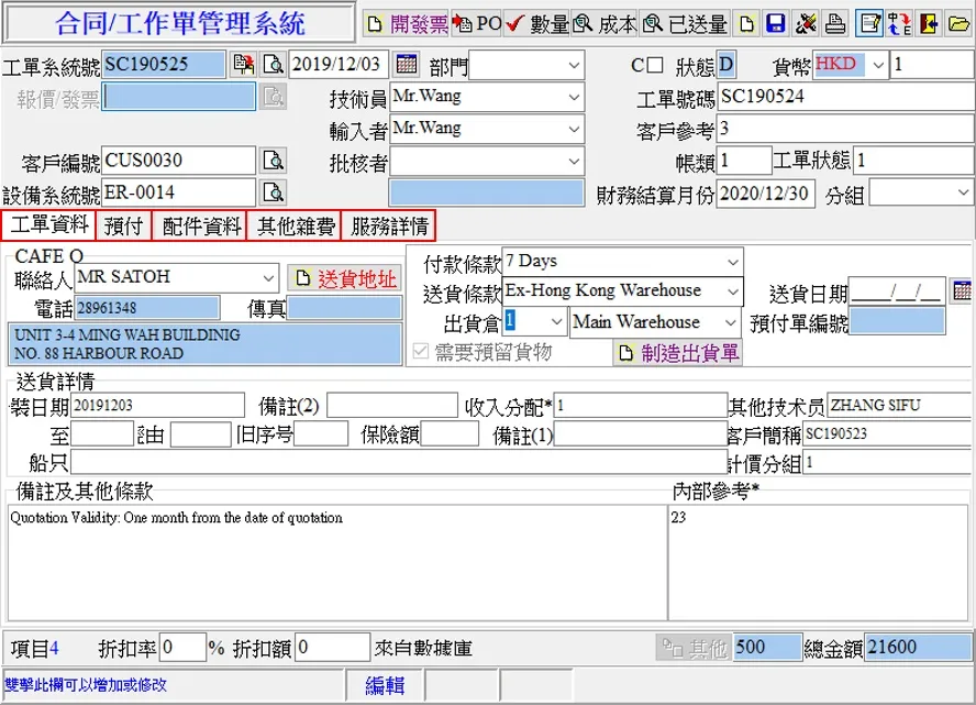 | 4. | 整合流程管理∶系统详细记录项目的相关数据,包括无限次采购,送货,安装,上单,後加单,客户确认数据,发票,清帐到会计等,无一漏洞; |